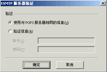 8〕 在弹出窗口“ESMTP服务器验证”里点选“使用与POP3服务相同的信息”。如下图所示: