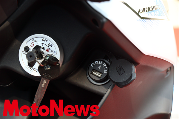 自從六期式樣改為全時點燈以後,許多新車的右側把手總成就騰出了一片空間,SYM便善用此處安上了雙簧警示燈,無論是在緊急時刻或是車隊出遊相互提醒時都是個相當實用的配備。在動力輸出經過優化、車重再度下修3KG並透過五爪輕量化鋁合金輪框以收減輕簧下重量之效,車身操控感更加輕盈俐落的同時,鑰匙孔旁更有USB QC 3.0快充接孔,讓隨身的電子產品在旅途中永不斷電。