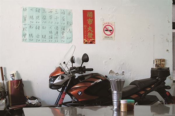 4.沒騎車的時候,愛車還是在店裡和米粉伯一起招呼客人