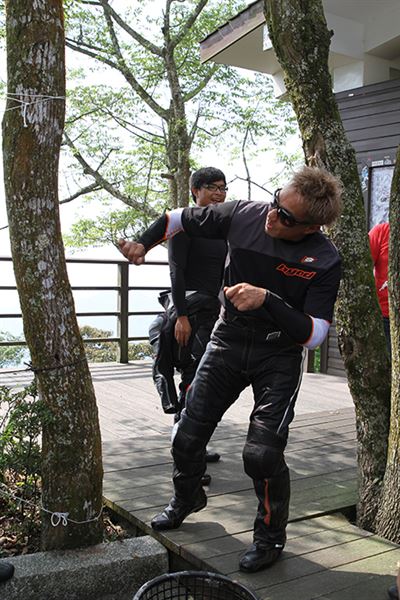 事實上,雖然說是技術指導。但藤原其實在一般的開放道路上並不會騎得像是在賽場上那樣,反而是一路欣賞著風景來悠遊的騎乘。但根據他的說法,在一般道路上本來就不該和封閉的賽車場上一樣,而對於車友的提問,他倒是毫不吝嗇地說出他自己的作法,以及應該注意與避免的事項。然而儘管是這樣,對車友來說,有時候欠的就是一個真正有經驗的專業騎士的說明,而愉快的南台三之旅,就在大家心滿意足的騎乘當中圓滿結束。