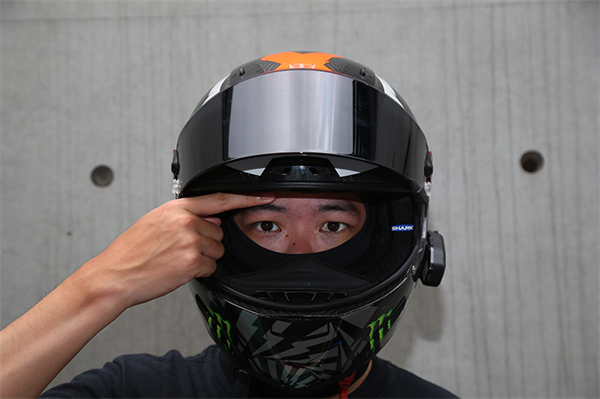 將頤帶調整至適當位置後,左右搖晃頭部確認安全帽與頭部之間無空隙造成晃動。