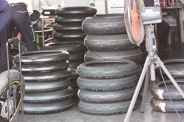 場邊有大量的普利司通R10輪胎。