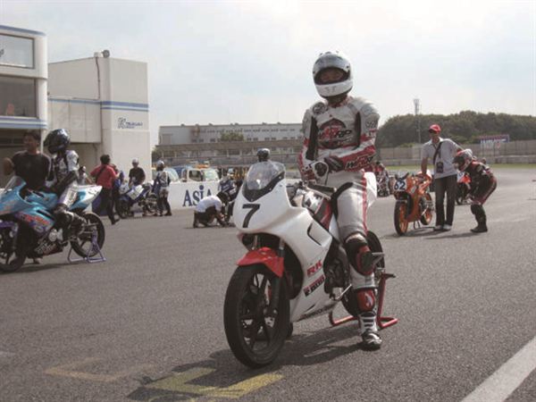雖兩位選手在國內都有十分豐富的競賽經驗,但都是首次蒞臨日本筑波賽道,因此MFJ特別安排GP125前兩屆世界冠軍坂田和人教練親自指導。首先先從繞錐練習,世界冠軍所指導的繞錐動作自然不同凡響,親自帶領選手們進行煞車練習以及路線調整,非常詳細的解說與示範,讓選手們快速的就抓到教學重點。