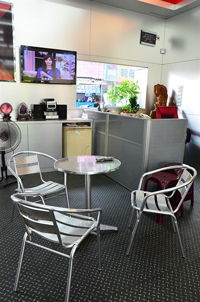 提供休息區給等待的顧客休息,除了報章雜誌還有電視可看