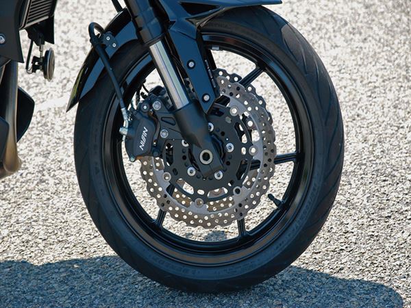 跑得快也要停得住,KAWASAKI也針對Versys 650的制動系統進行改良,首先就是後煞車碟盤直徑加大,並全面配備ABS系統,前煞車卡鉗也更換成了Nissin所代工的新款式,不過依舊維持是單二卡鉗,碟盤直徑也照舊。