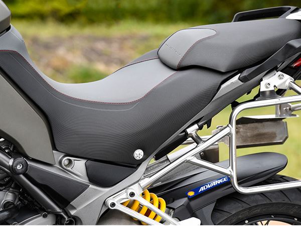 話雖如此,這台摩托車的魅力可絕不僅於此!ENDURO雖然是以MULTISTRADA 1200S為基礎強化越野性能,但仔細觀察兩台車的差異後,可以發現ENDURO多了許多專用的配件,可不是只有延長避震的行程、加大輪框的尺寸那麼簡單而已。一旦開始起步後,就能清楚感受到引擎反應的差別,由於點火時機和齒輪比的差異,在催油門時的反應上來說,反應較溫和些。