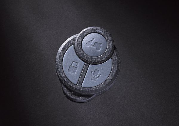 在隨車附的搖控器上,有著尋車、警戒及錄音三種功能不同的按鍵,只要在車輛附近按下尋車鍵,車輛感應到後便會播放語音,讓車主在芒芒車海中快速找到愛車,跟汽車的搖控中控鎖有異曲同工之妙。