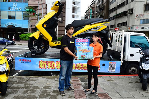 弘道基金會也回贈感謝狀,給俱樂部以及提供巨無霸環島的台灣山葉公司,分別由王版主以及彭協理代表收下。台灣山葉林經理說,由車主自行組織的勁戰俱樂部,每年都會有環島活動,從去年起便開始與公益團體結合,而山葉也提供了GP車手Rossi所帶的AGV安全帽一頂做為抽獎獎項,希望能起到拋磚引玉的功效,讓大家的愛心能更踴躍的展現!