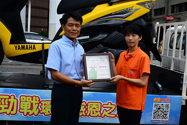 由勁戰版主與YAMAHA彭協理接下基金會贈與的感謝狀