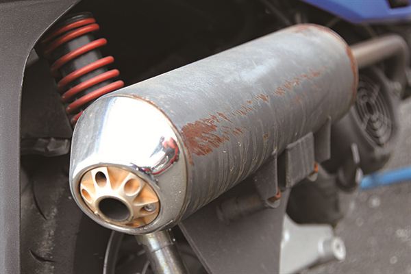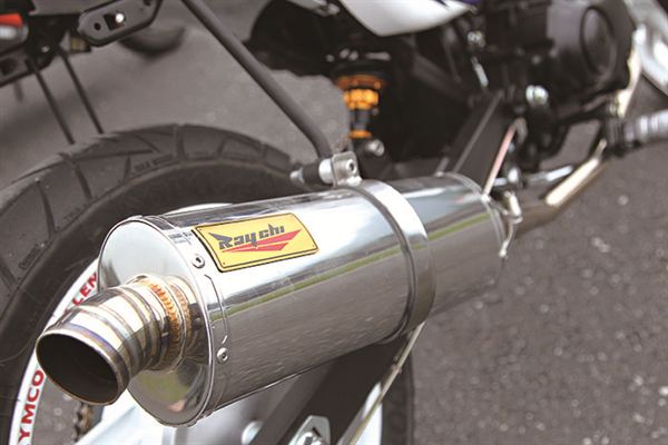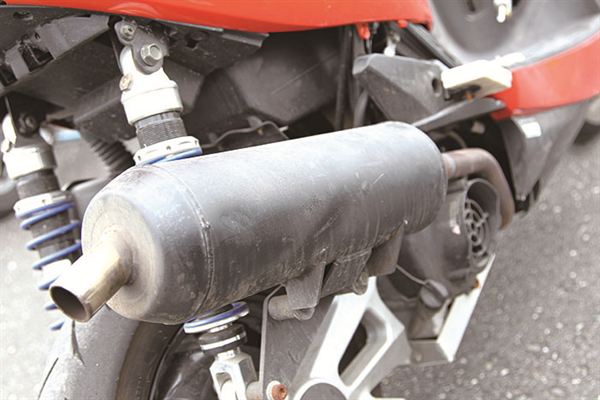 訂製排氣管,為了增加過彎傾角,筒身位置較原廠高出許多。