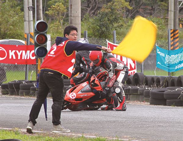 在事故路段,旗號手可是拚命地揮動旗幟,警示後方的車手。