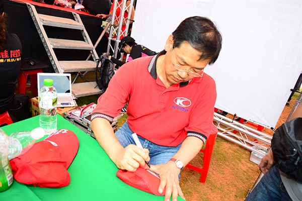 大家熟悉的柯副總也來到現場,正在抽獎的紀念帽上簽名。