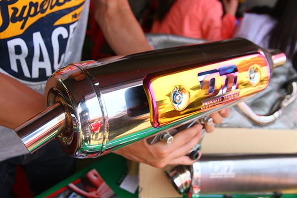 專精排氣管部品的OM銧榮,除了排氣管所強調的加速度表現之外,以鈦合金、白鐵為主的材質上作出華麗的質感,是其一大特色。