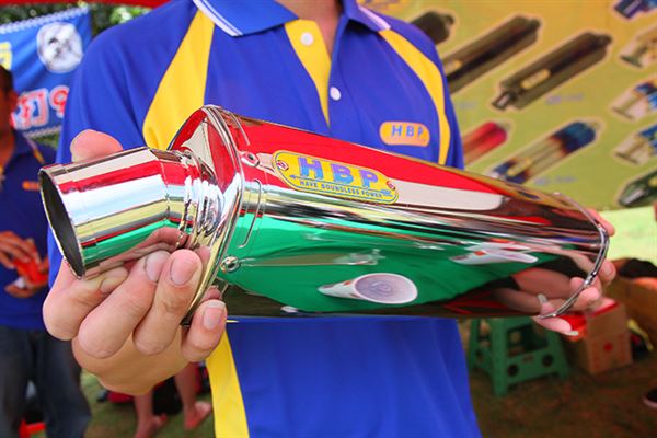 一向以製作純鈦合金以及碳纖維排氣管聞名的HBP詠裕企業社,在這次大會也是注目的焦點,除了推出新產品亮相,更大手筆的請來show girl幫忙宣傳,並且提供了自家引以為傲的排氣管當大會獎品,可以說是廠商的好典範。