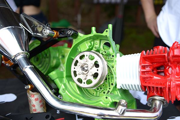 專營開發檔車相關改裝部品的禾倉技研,這次在光陽大會也請SG幫忙推薦速克達專用的碟盤、排氣管等相關部品,並且還在會場上展示著自家改裝檔車來吸睛,引來大批光陽KTR與酷龍系的車主駐足。