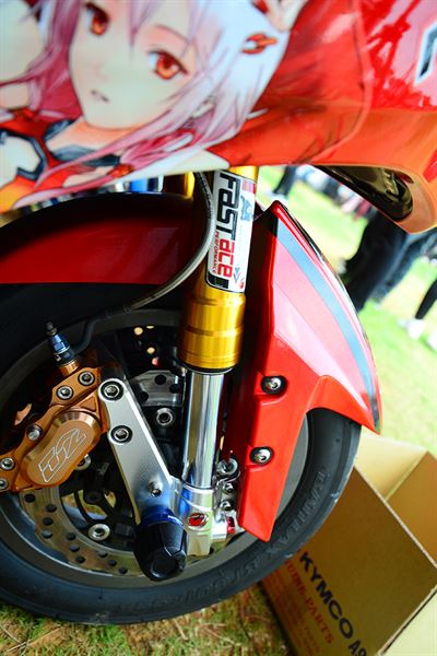 從日本起源的痛車文化,在台灣以速克達族群的接受度最高,在這次會場也有不少痛車參與展出,它們除了不同的圖片彩貼之外,改裝部品也都相當講究。