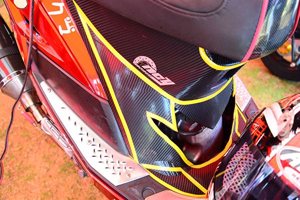 採用Simota碳纖氣瓶懸吊為後懸吊,後土除也是自製碳纖擋泥板。
