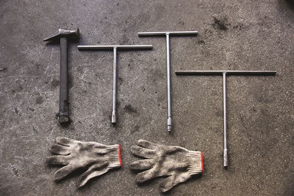 本次所使用到的工具有T型扳手10號、12號、14號,鐵鎚和手套