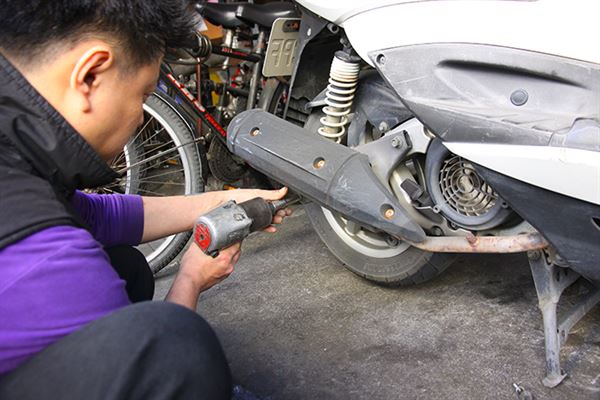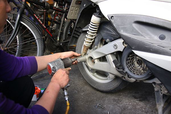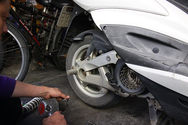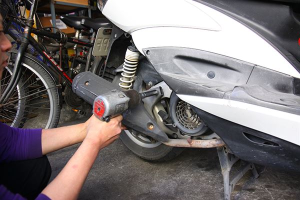 取下後輪,若久未動難拆可用鐵鎚輕敲