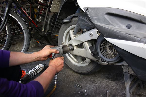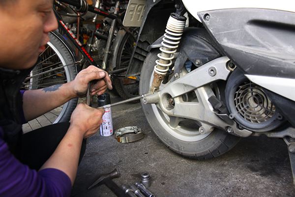 速克達的停止全倚賴煞車系統,隨著使用時間剎車皮也會逐漸耗損,由其在市區行駛時消耗會更大,因此若發現剎車時的力道減輕了,必須趕緊進行更換剎車皮,才能夠保證擁有足夠的安全性。