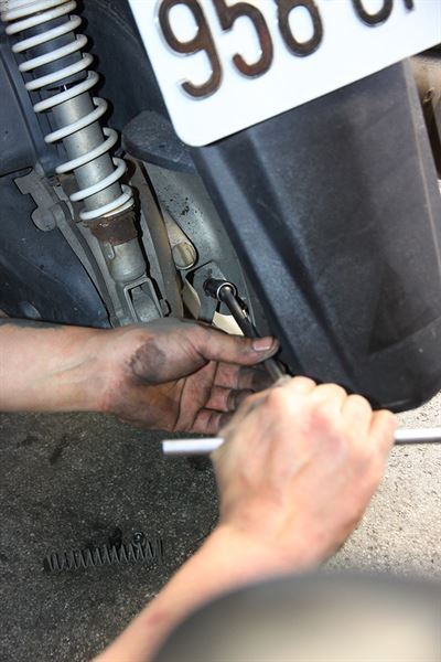 剎車是機車最重要的必需品之一,掌握了機車的主要安全性,後煞又比前煞更穩定,不會因為急煞的重心移動造成車輛翻車,所以一般使用的頻率上也比較高,是一項重要的消耗品。剎車不夠靈時,不必太緊張,車友可以先旋轉後輪旁的游動間系螺絲來調整鬆緊,不過這只是暫時的緩衝,通常很快又會失去剎車力道,必須趕緊找時間更換煞車皮。