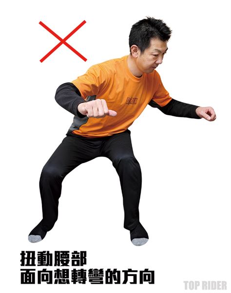 實際上就是扭轉胸、腰椎的動作,除了非常疲憊之外,也很難對車身和下半身施力,摩托車無法確實過彎