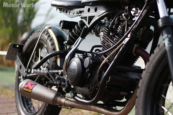 改裝明細:Cb125K油箱,手工鋁製前罩,日本SR400三角台,Kick搖臂改單槍,Akrapovic 鈦合金排氣管,手工腳踏後移,隱藏式油門座,Rpm單槍訂製避震器。