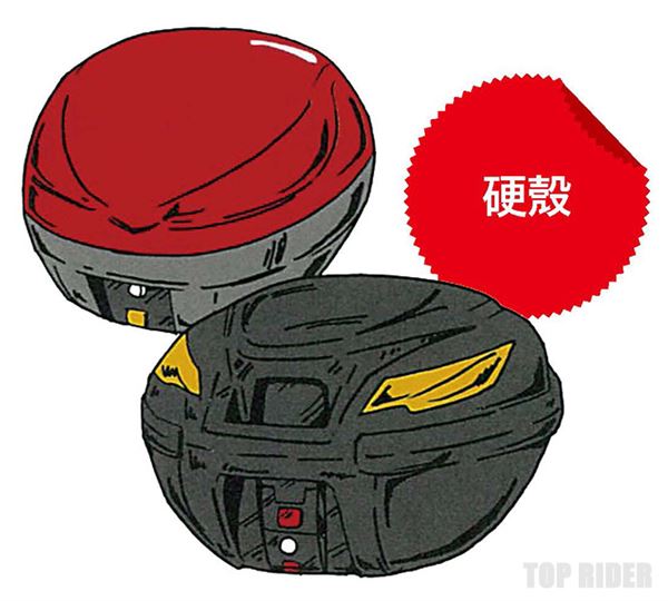 安裝在車身的包包和行李廂有分採用尼龍等材質的軟包和塑膠或鋁合金製的硬殼,軟包的種類豐富,和硬殼比起來也比較便宜,單體重量輕,拿著走的時候也方便,相較於此,硬殼的行李箱雖然大部分都需要專用的支架,但是平常就能裝在摩托車上當作類似於汽車的行李箱來使用是一大魅力