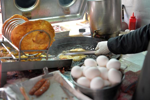 老闆酥炸蔥油餅的過程非常講究,一般店家可是吃不到這種口味。