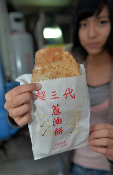 大到連袋子都裝不下的蔥油餅,非常值回票價。