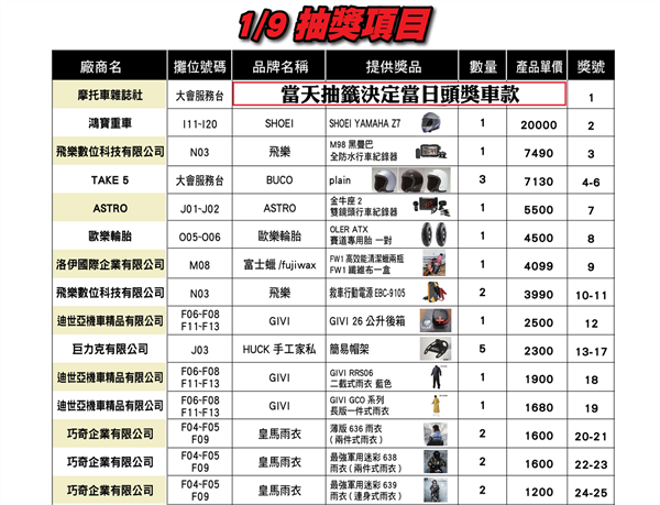 注意:頭獎得主必須在現場,主持人若叫號三次未達主舞台,則取消中獎資格,繼續抽出下一位得獎者