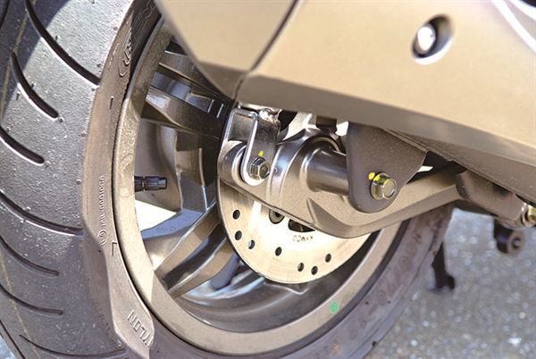 不只前雙碟煞車力道強勁,就連後煞車也很夠力,輕鬆做出甩屁股的動作。