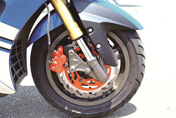 原廠前雙碟配備240mm浪花碟盤,提供強勁的煞車力道。