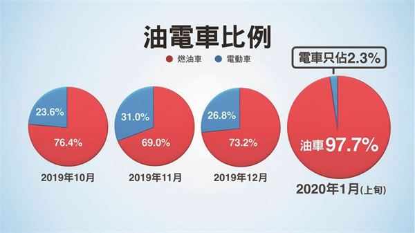 到了沒有完整補助的2020年一月上旬,電動車市占率掉落到2.3%,