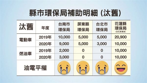目前只有花蓮市同樣的補助金額,其餘還是以電動車有較多補助