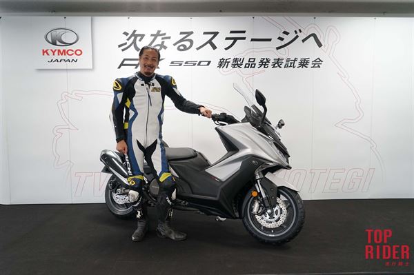 TOP RIDER在現場採訪時,宮崎試車手也跟我們分享,AK550有大型速克達前所未見的運動感,雖然茂木賽車場的彎道比較刁鑽,稍微激烈的操駕方式下,以運動操駕為訴求的速克達而言,AK550的表現已經相當不錯。