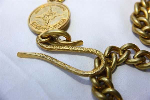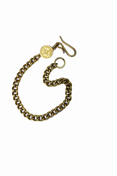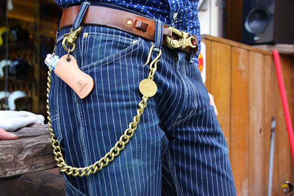 黃銅打造的腰鏈,透著金黃色的金屬光澤、相當搶眼,上頭搭配著自家品牌LOGO,在配上手工雕紋的掛勾,有著難以比擬的細節,限量生產100個。