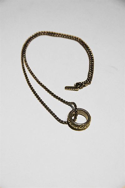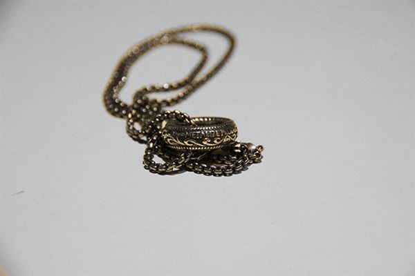 在戒子部分有著細膩的雕花,搭配上特殊的鍊目所製作出的戒圈項鍊,低調內斂的風格,散發著品牌特有的魅力。