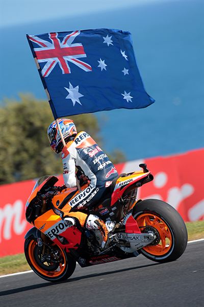MotoGP來到現任王者Stoner的故鄉-澳洲,Stoner將是最後一次在故鄉澳洲的賽場上奔馳MotoGP的賽車,飛利浦島賽道也特別將第三彎命名為Stoner彎。而Stoner在故鄉也表現得相當漂亮,以獨走姿態跑完這場比賽並拿下優勝,也創下連續六年在家鄉澳洲拿到優勝的新紀錄。