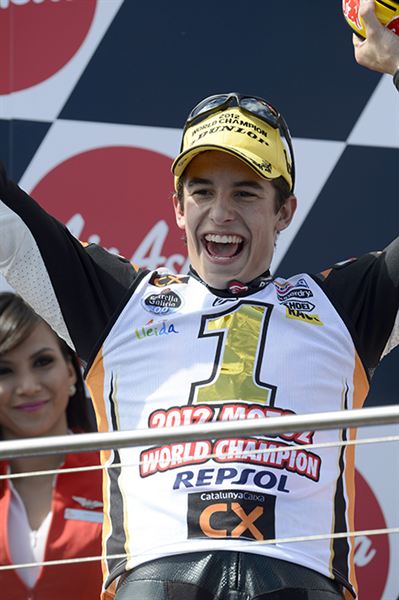 今年已經獲得8次分站冠軍的Marquez,雖然早就已經被Honda GP廠車隊內定為明年度的車手,但Marquez也展現出實力,在場上全力以赴,在本站最後跑出第三名的成績,確定成為2012年 Moto2的年度總冠軍。