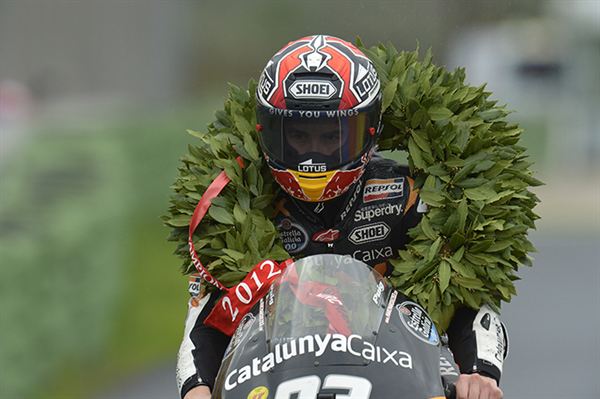 與Moto GP一樣,Moto2也在澳洲站誕生出今年的年度總冠軍,西班牙車手Marc Marquez眾望所歸,拿下2012 Moto2王者寶座。