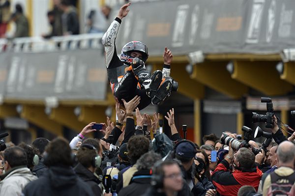 對手Espargaro雖然以高達16秒之差的獨走成績漂亮獲勝,卻還是無法終止Marquez的奪冠之路,對Espargaro等人來說,明年或許是個能夠伸展的新賽季。