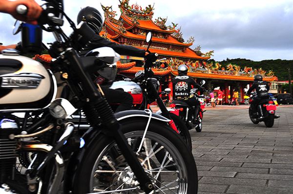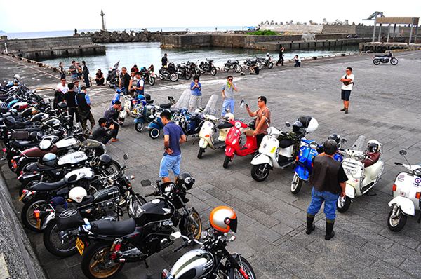 現場雖然聚集了不少TRIUMPH及VESPA,但也有為數不少的野狼、愛將等經過大幅度改裝的輕檔車,中午過後集合完畢所有人便一齊出發,沿著106線道前往莫內咖啡,再穿過平雙隧道,目標直指福隆海水浴場的美麗沙灘,而這也是整場活動中最為重要的區塊。