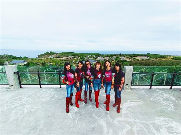 近十位女騎士車友一同參加環島之旅,照片中的彩霞姊已經是第四次騎車環島