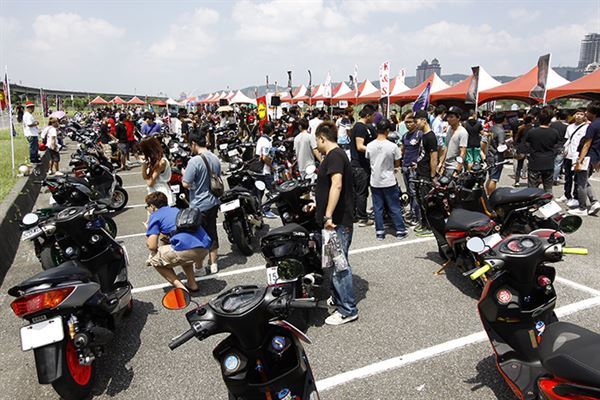 熱鬧的會場出現了警察關心,不過本次活動已經過合法申請,而車友們都相當遵守秩序,因此只是進來參觀一下年輕人的創意吧