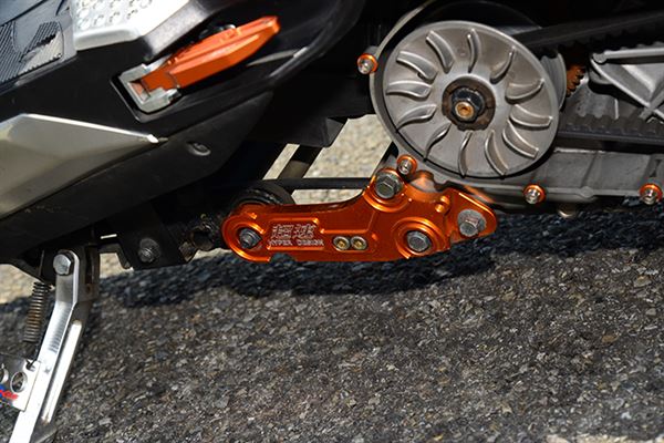 搭配白鐵管與紅金配色的輪框,機械面的設計也頗為講究