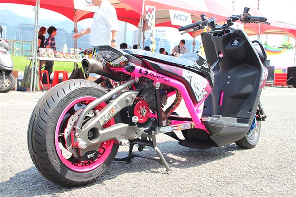 日比谷推出的後移BW’S,由螢光粉紅搭配爆炸式的車殼塗裝