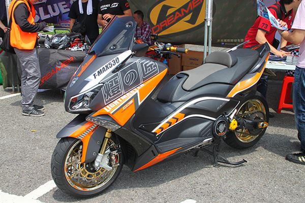 參考YAMAHA原廠賽車配色的SMAX,也是在Dog House的攤位上展出