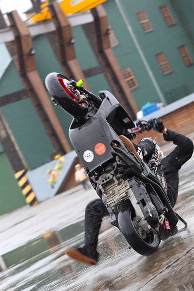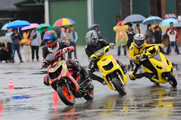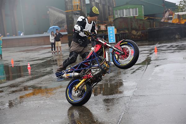 場外有帥氣的機車花式表演,即使下雨依然表現精彩