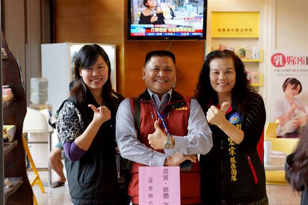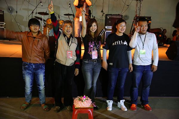 圖中比著一字手勢的男人便是這次整場活動的總籌畫—趙哥,一字手勢代表著團結、一起來的意思